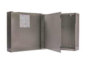 The 350HD is a large, Grade A, ultra-attack-resistant enclosure featuring 16-gauge cold-rolled steel construction, dual exterior door locks, and dualwall and door tamper switches. It includes reinforced screw patterns on theouter and inner doors (up to 22 screws), a full-skirt outer door, and standard 3-hole pattern for module mounting. Dimensions: 17" W x 16" H x 4.5" D.
